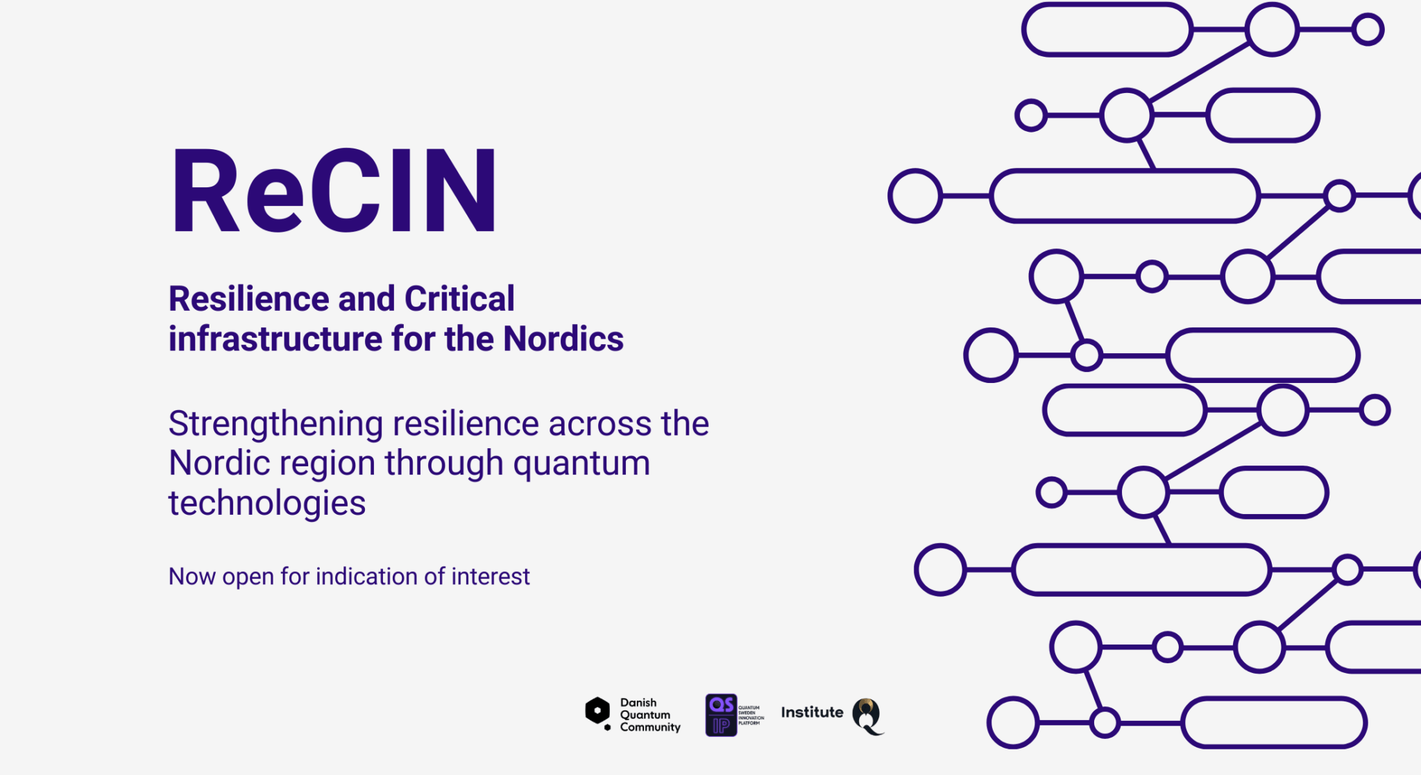 The goal of the ReCIN pre-project is to identify use cases based on quantum technologies supporting the improvement of resiliency for critical infrastructures in the Nordics. The use cases will be selected to showcase early usage of quantum technologies to improve the resilience of critical infrastructures of importance to the Nordic societies, such as water supply, energy supply, telecommunications, and navigation systems, e.g. GPS and Galileo.